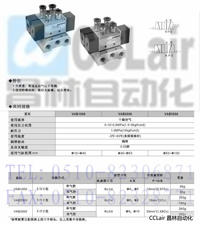 VAB1110,VAB1111,VAB1210,VAB1211,VAB1220,VAB1221,5口氣動閥,