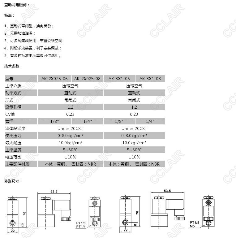AK-2X025-06,AK-2X025-08,AK-3X1-06,AK-3X1-08,直動式電磁閥