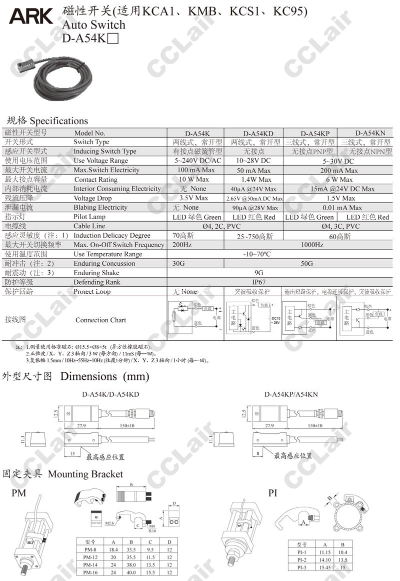 型號: D-A54K,D-A54KD,D-A54KP,D-A54KN,ARK磁性開關