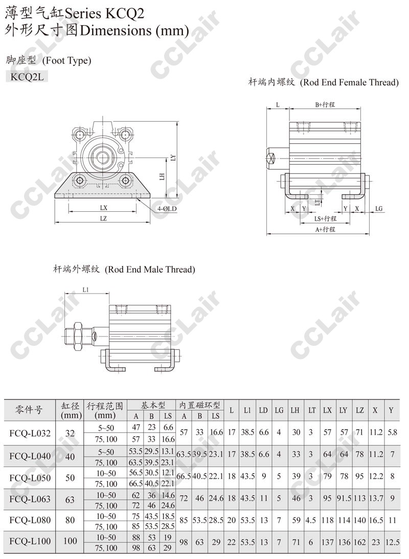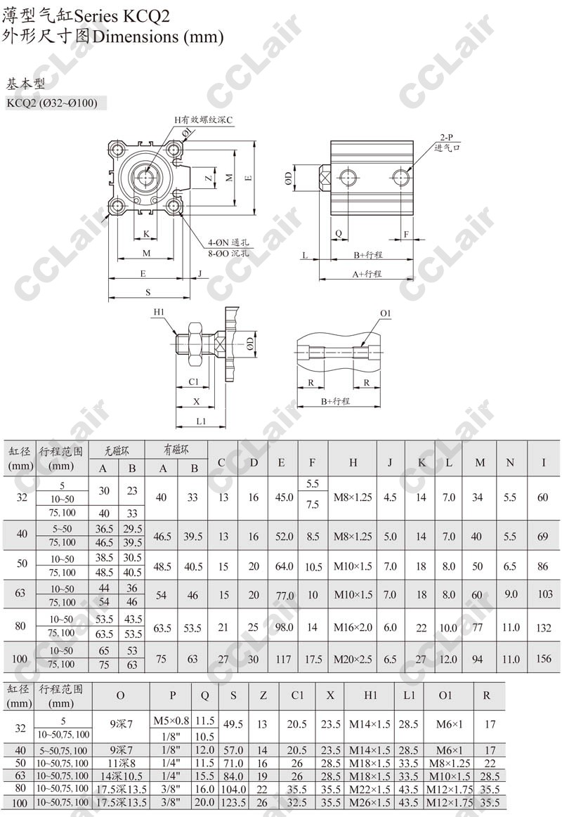 KCQ2L32-45,KCQ2L32-50,KCQ2L32-75,KCQ2L32-100,KCQ2L40-45,KCQ2L40-50,KCQ2L40-75,KCQ2L40-100,