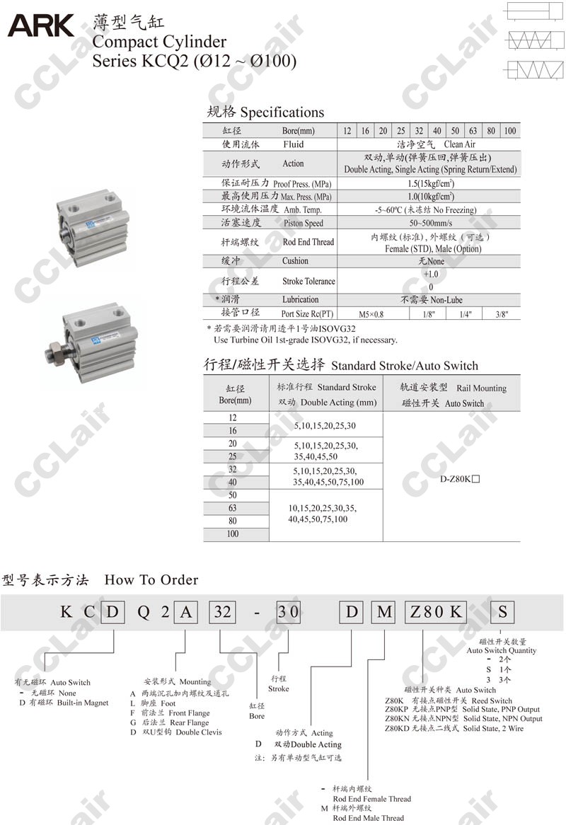 KCQ2A32-45,KCQ2A32-50,KCQ2A32-75,CCLair KCQ2A32-100,KCQ2A40-45,KCQ2A40-50,KCQ2A40-75,KCQ2A40-100,