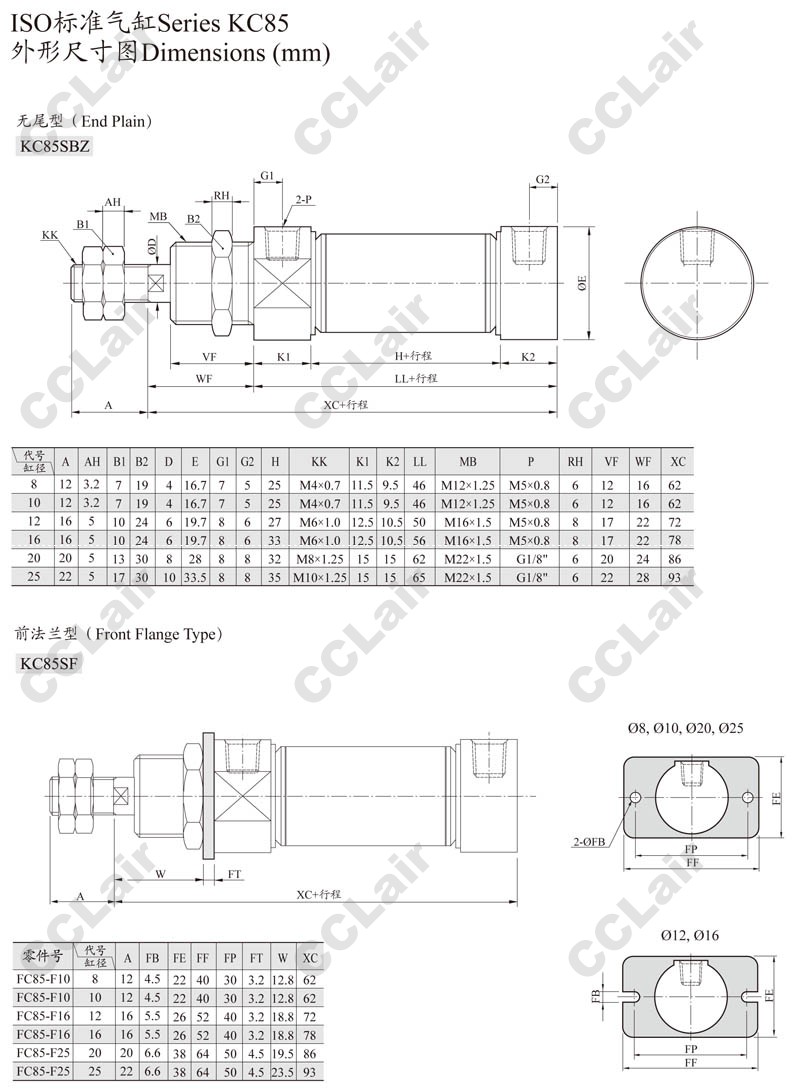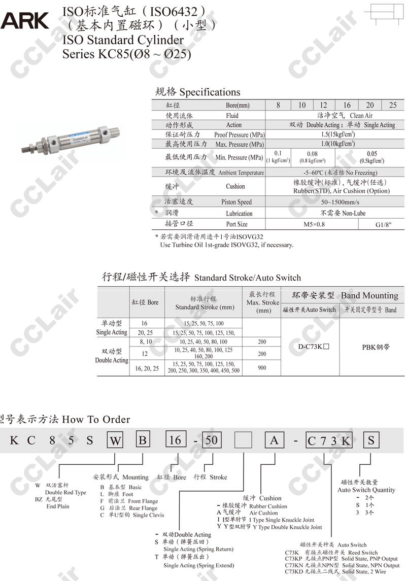 KC85SWB,KC85SBZ,KC85SG,KC85SL,KC85SC,KC85SF,KC85SG8-80,KC85SWB8-100,ARK標(biāo)準(zhǔn)氣缸
