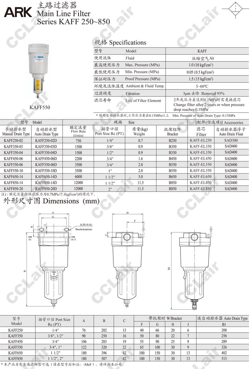 KAFF250,KAFF350,KAFF450,KAFF550,KAFF650,KAFF850,KAFF350-03D,KAFF550-10,ARK組合過濾器 |