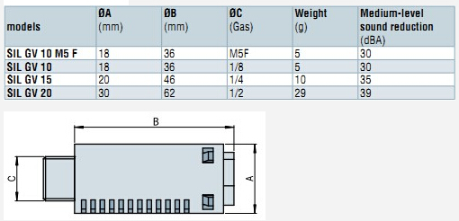 詳細(xì)信息 SILGV10M5F,SILGV10,SILGV15,SILGV20,COVAL擴(kuò)散式消音器 主要參數(shù)見(jiàn)下表: