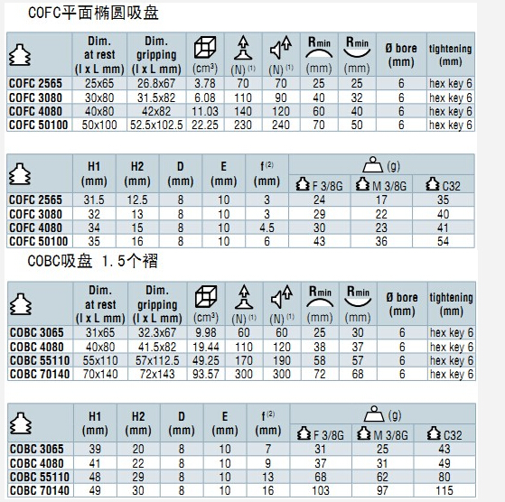 詳細(xì)信息 CFC35,CFC50,CFC75,CFC100,CFC125,CBC30,CBC45,CBC60,CBC85,CBC115,COVAL吸盤高性能吸盤