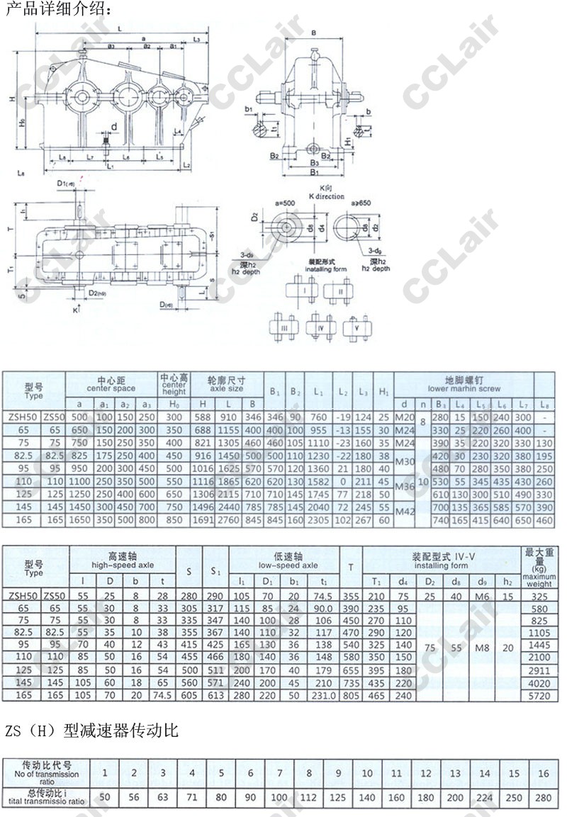 型號: ZS50,ZS65,ZS75,ZS82.5,ZS95,ZS110,ZS125,ZS145,ZS165,圓柱齒輪減速機