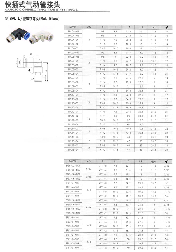 BPL04,BPL06,BPL08,BPL10,BPL12,BPL14,BPL15,BPL16,BPL5/32,BPL3/16,BPL1/4,BPL3/8,BPL1/2,快插式氣動管接頭