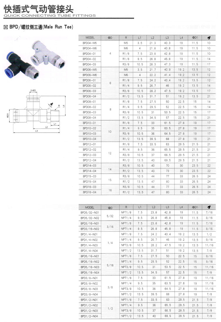 BPD04,BPD06,BPD08,BPD10,BPD12,BPD14,BPD5/32,BPD3/16,BPD1/4,BPD3/8,BPD1/2,BPD04-M5,快插式氣動管接頭