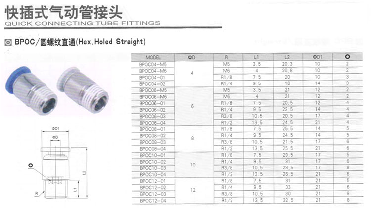 BPOC04-M5,BPOC06-M5,BPOC08-01,BPOC10-01,BPOC12-01,BPOC04-M6,快插式氣動管接頭