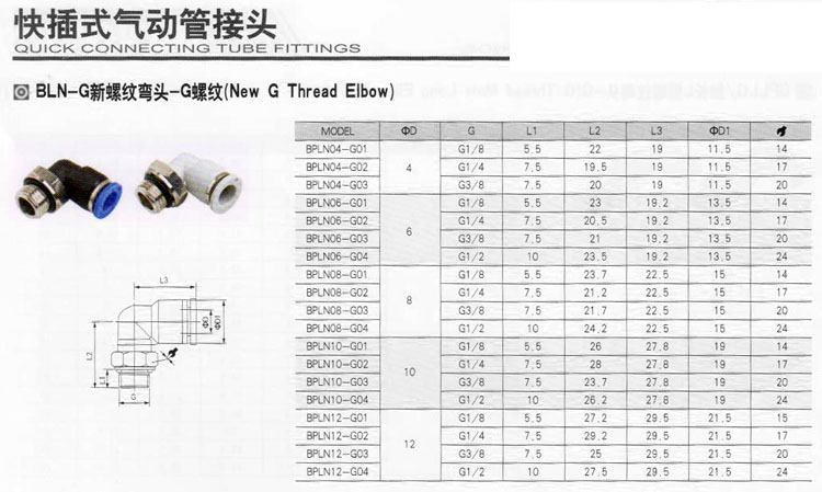 BPLN04-G01,BPLN06-G01,BPLN08-G01,BPLN10-G01,BPLN12-G01,快插式氣動(dòng)管接頭