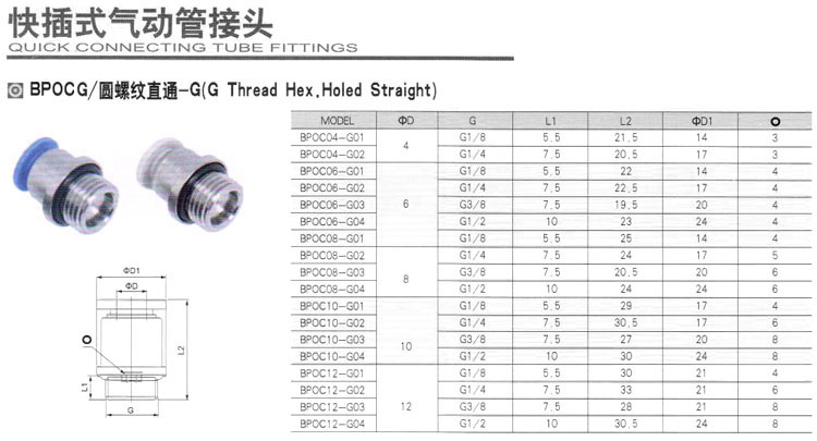 BPOC04-G01,BPOC06-G01,BPOC08-G01,BPOC10-G01,BPOC12-G01,BPOC04-G02,快插式氣動管接頭