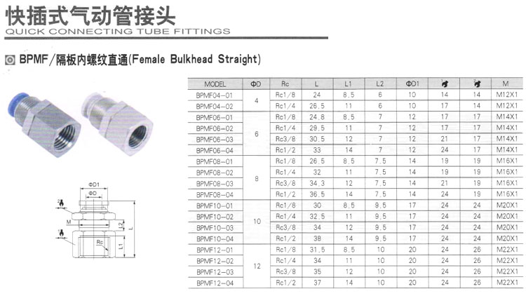 BPMF04-01,BPMF06-01,BPMF08-01,BPMF10-01,BPMF12-01,BPMF04-02,BPMF08-02,BPMF10-02,快插式氣動(dòng)管接頭