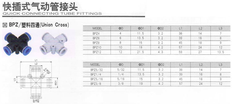 型號: BPZ4,BPZ6,BPZ8,BPZ10,BPZ12,BPZ5/32,BPZ1/4,BPZ5/16,BPZ3/8,
