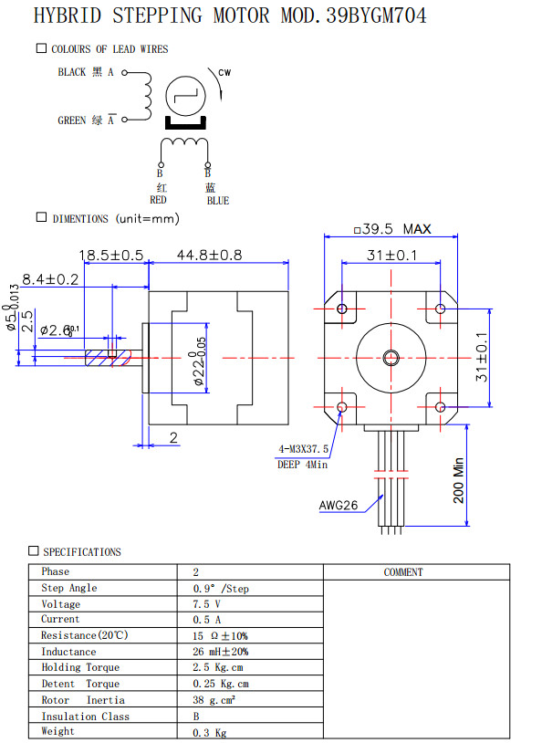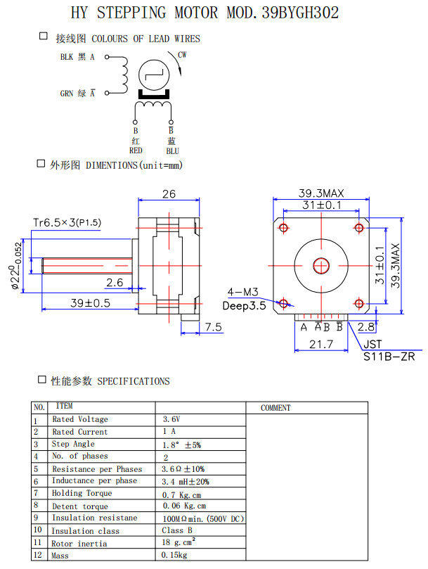 39BYGH302,39BYGH402,39BYGH407,39BYGH707,39BYGM703,39BYGM704,混合式步進(jìn)電機(jī)