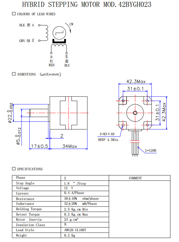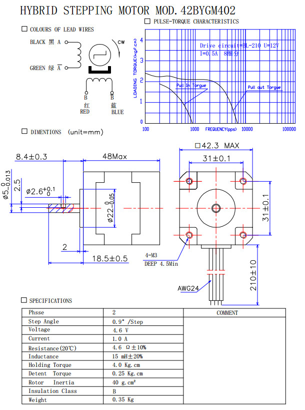 42BYGH010,42BYGH011,42BYGH023,42BYGH102Q,42BYGM402,混合式步進電機