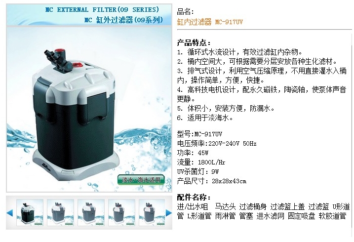 詳細(xì)信息 MC-917UV,缸內(nèi)過(guò)濾器