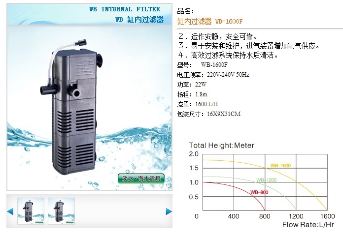 詳細(xì)信息 WB-1600F,缸內(nèi)過(guò)濾器