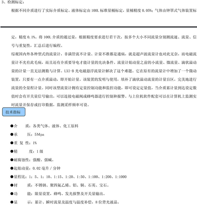 LXI-B光電磁懸浮流量?jī)x目前已廣泛應(yīng)用于化工、石油、醫(yī)療、制藥、機(jī)械、科研等領(lǐng)域,適用于各種氣體及液體。