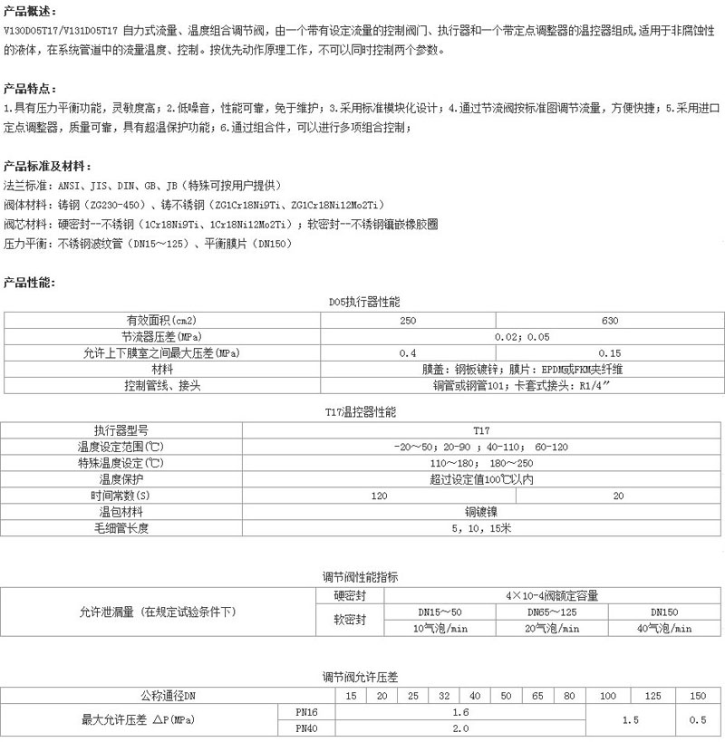 V131D05T17-16C-DN15,V131D05T17-40C-DN20,V131D05T17-16C-DN32,自力式流量溫度組合調(diào)節(jié)閥