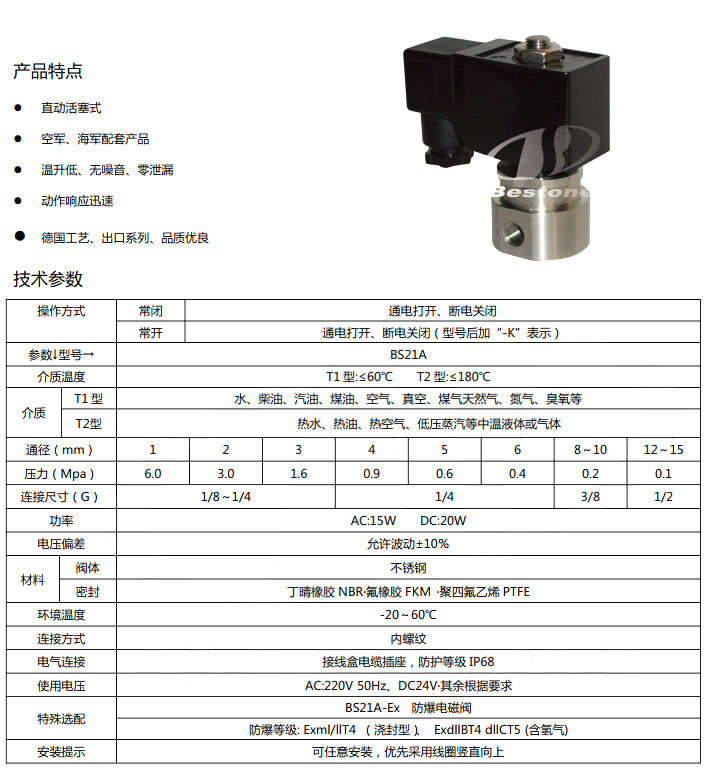 詳細(xì)信息 BS21A-DN1,BS21A-DN2,BS21A-DN3,BS21A-DN4,BS21A-DN5,不銹鋼電磁閥
