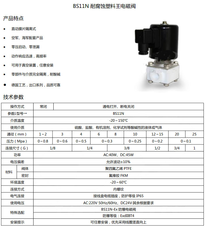 詳細(xì)信息 BS11N-DN1,BS11N-DN2,BS11N-DN3,BS11N-DN4,BS11N-DN6,耐腐蝕塑料王電磁閥
