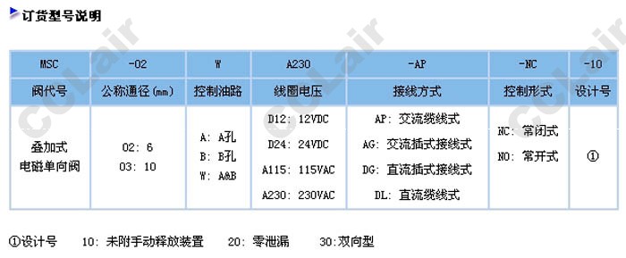 MSC-02A-D12-AP-NC-10,MSC-02B-D24-AP-NC-20,MSC-02W-A115-AP-NC-30,疊加式電磁單向閥