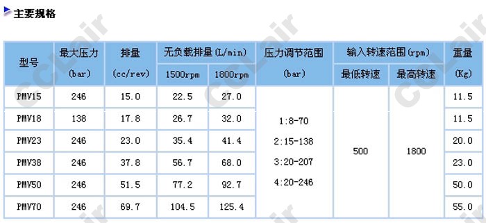 型號: PMV-15,PMV-18,PMV-23,PMV-38,PMV-50,PMV-70,PMV-15-E-2-R-B-K-10,PMV-18-B-1-R-B-K-10,變量柱塞泵