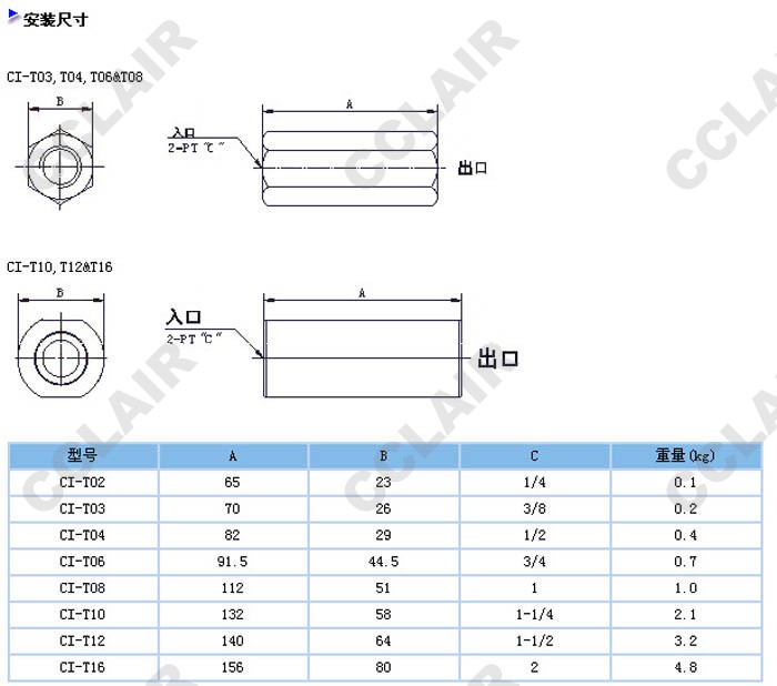 CI-T03-05-10,CI-T04-05-10,CI-T06-05-10,CI-T06-05-10,直通單向閥