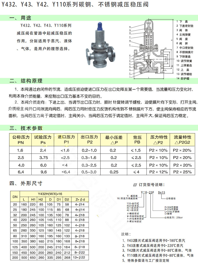 YK42W-16P-DN20,YK42W-16P-DN25,YK42W-16P-DN32,YK42W-16P-DN40,YK42W-16P-DN50,YK42W-16P-DN65減壓閥