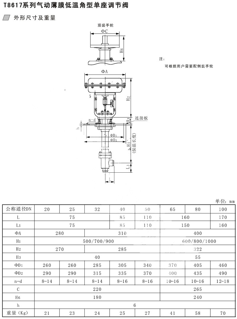 T8617-16-DN20,T8617-16-DN65,T8617-25-DN32,T8617-25-DN100,氣動(dòng)薄膜低溫角型單座調(diào)節(jié)閥