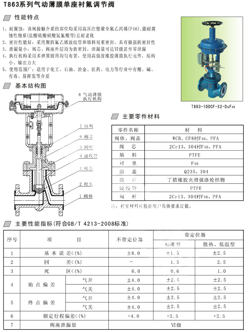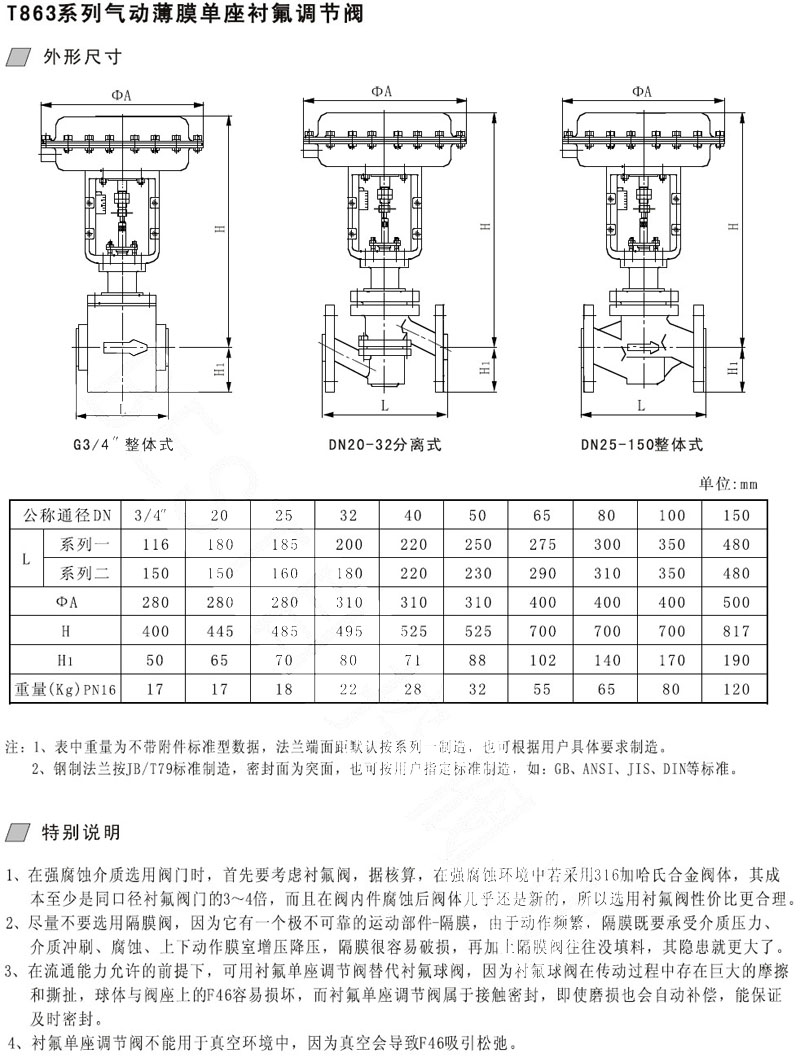 T863-10C-DN20,T863-16C-DN32,T863-25C-DN40,氣動(dòng)薄膜單座襯氟調(diào)節(jié)閥
