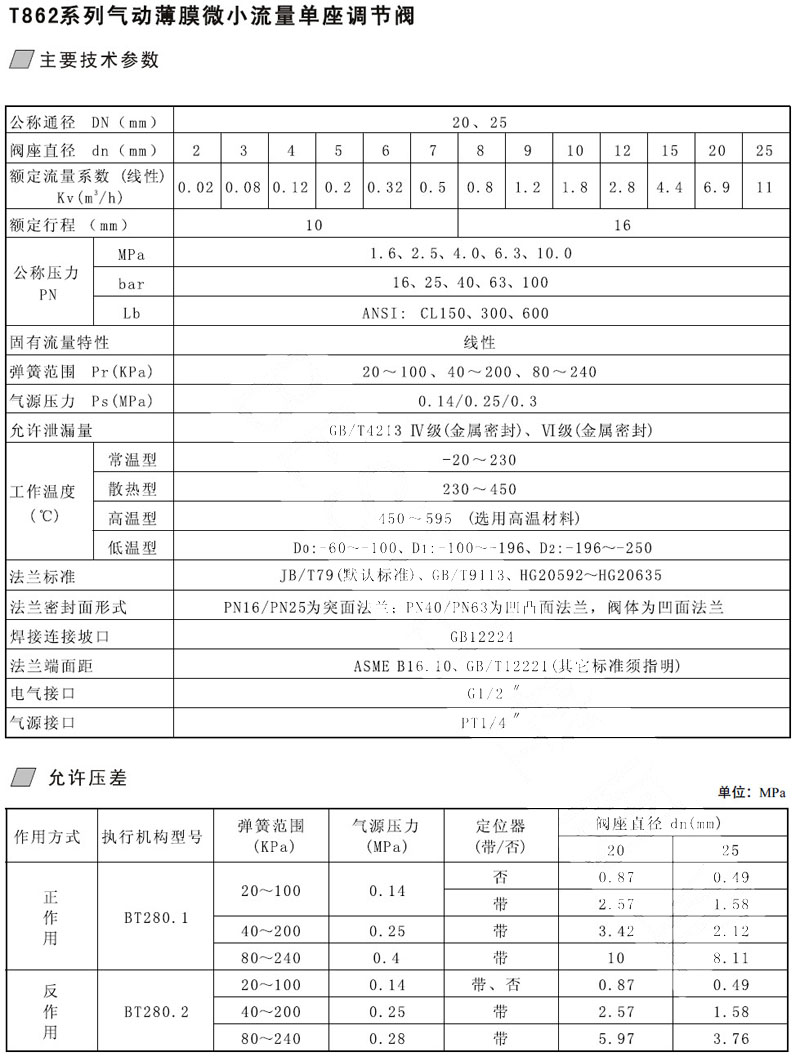 T862-16B,T862-25B,T862-40B,T862-63B,T862-100B-DN20,氣動薄膜微小流量單座調(diào)節(jié)閥