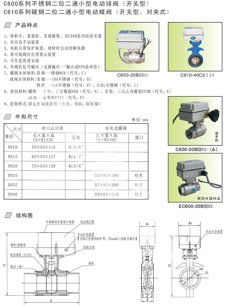 詳細(xì)信息 C600-10,C600-15,C600-20,C610-25,C610-32,C610-40,二位二通小型電動(dòng)閥