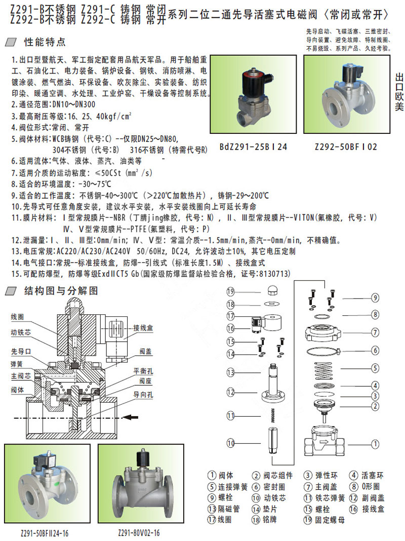 Z291-10B,Z291-15B,Z291-25BC,Z291-32BF,Z291-40BF,Z291-50BFC,先導(dǎo)活塞式電磁閥