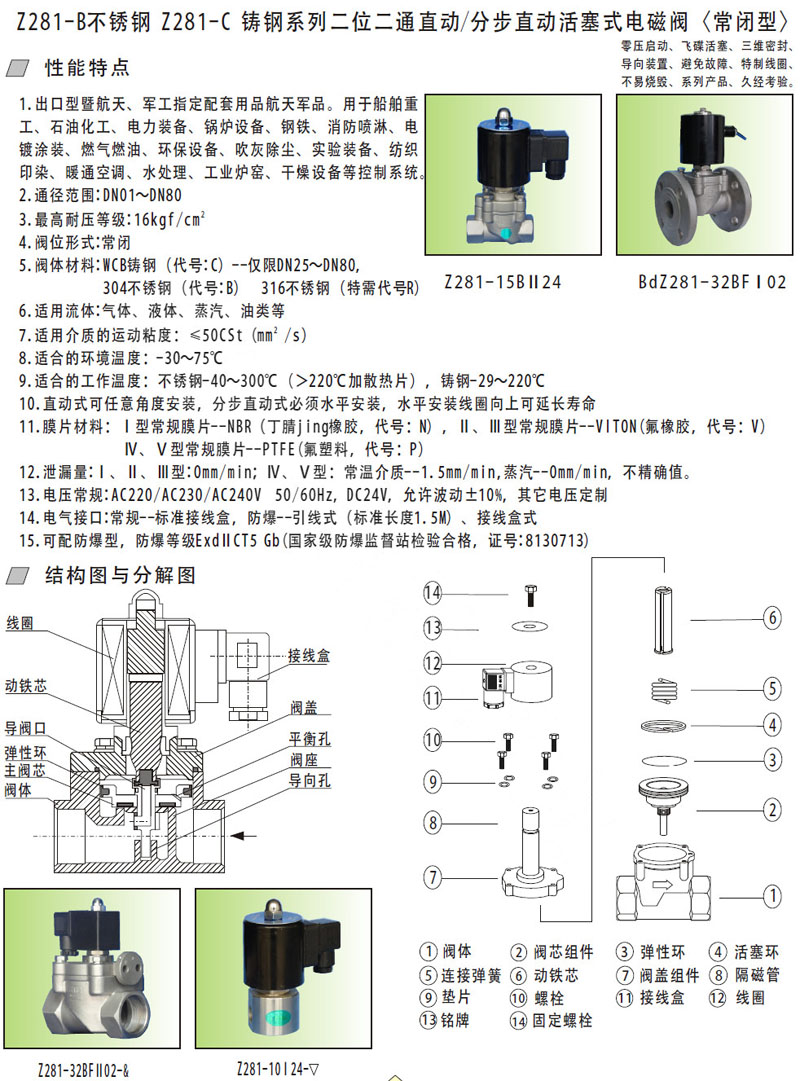 Z281-01B,Z281-02B,Z281-32BC,Z281-40BC,Z281-65BF,Z281-80BFC,直動(dòng)活塞式電磁閥