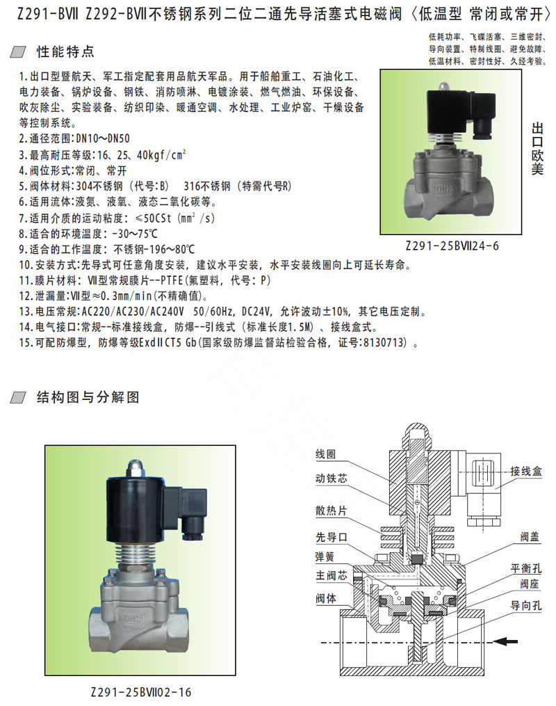 詳細信息 Z291-10BVII,Z291-15BVII,Z291-20BVII,Z291-25BFVII,Z291-32BFVII,不銹鋼先導(dǎo)活塞式電磁閥