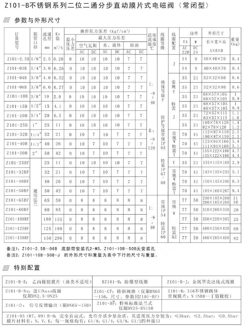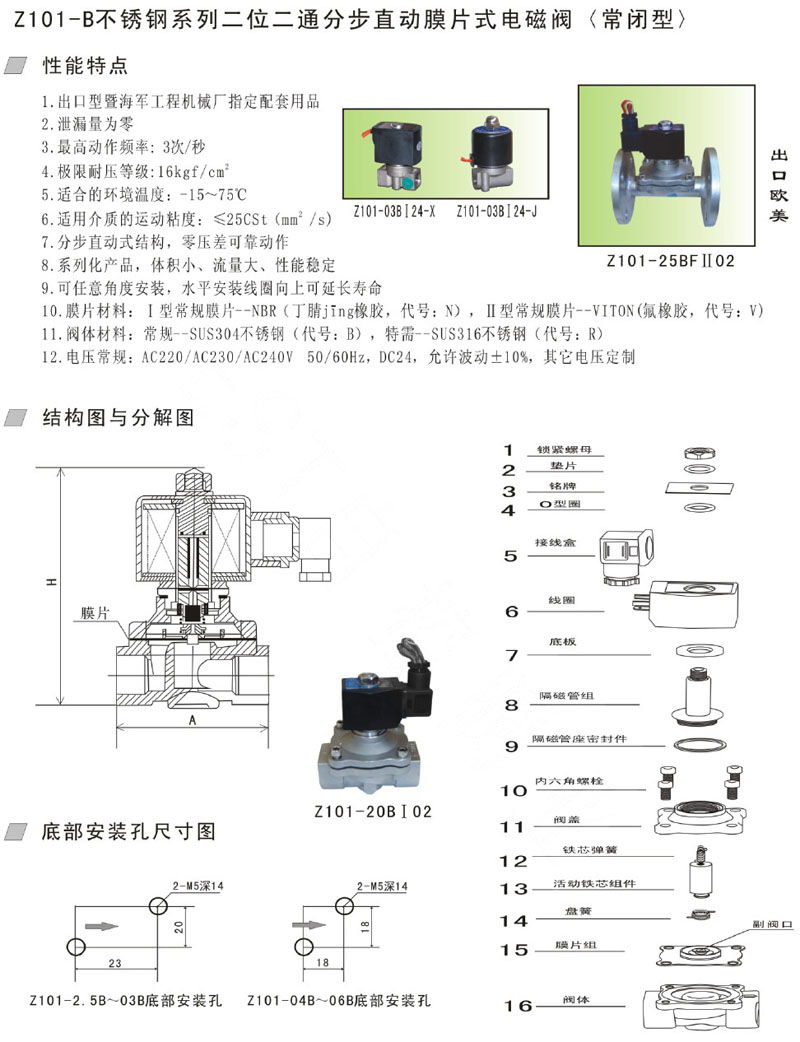 Z101-2.5B,Z101-03B,Z101-04B,Z101-06B,Z101-10B,Z101-15B,Z101-20B,不銹鋼分步直動膜片式電磁閥