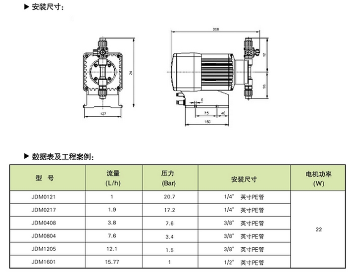 詳細(xì)信息 JDM0121,JDM0217,JDM0408,JDM0804,JDM1205,JDM1601,電磁隔膜式計量泵
