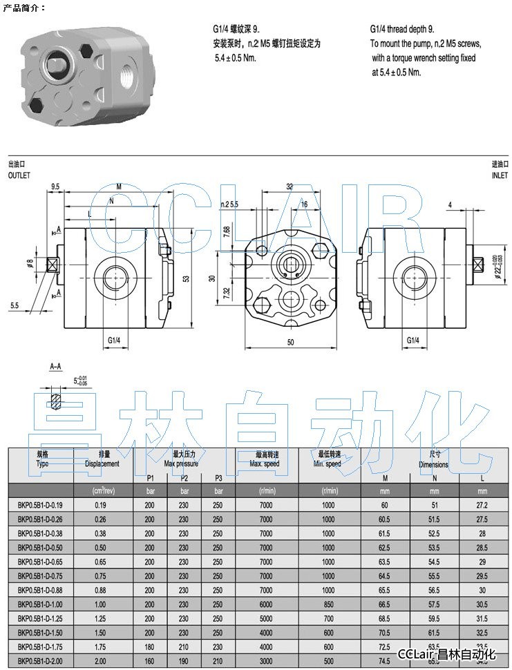詳細信息 BKP0.5B1-D-0.19,BKP0.5B1-D-0.26,BKP0.5B1-D-0.38,齒輪泵