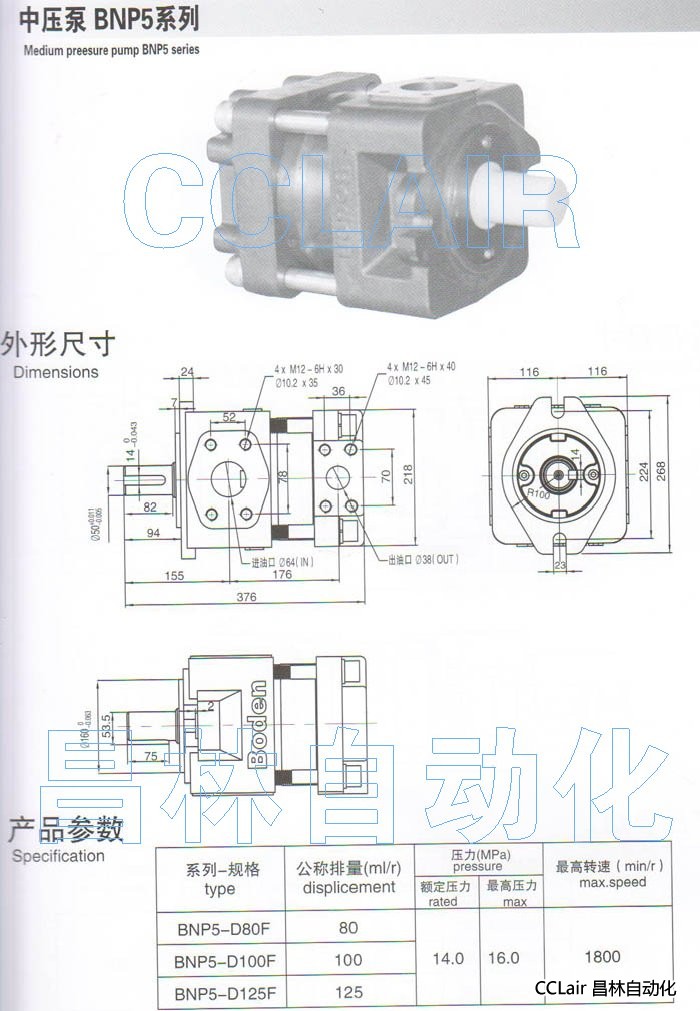 詳細(xì)信息 BNP5-D80F,BNP5-D100F,BNP5-D125F,中壓泵