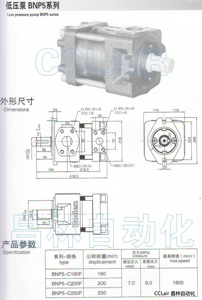 詳細(xì)信息 BNP5-C160F,BNP5-C200F,BNP5-C250F,低壓泵
