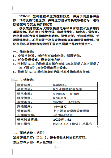 » SYB-351,(智能)數(shù)顯壓力控制器