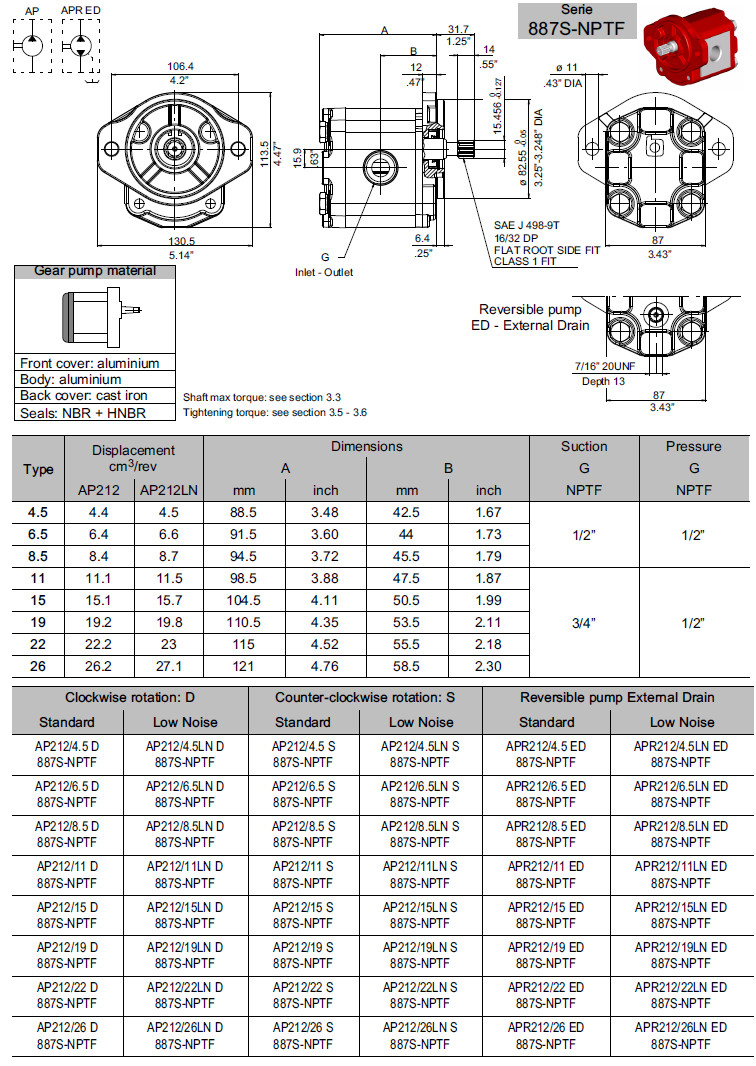 AP212/15-ED-887S-NPTF,AP212/19-ED-887S-NPTF,AP212/22-ED-887S-NPTF,AP212/26-ED-887S-NPTF外粘合齒輪泵