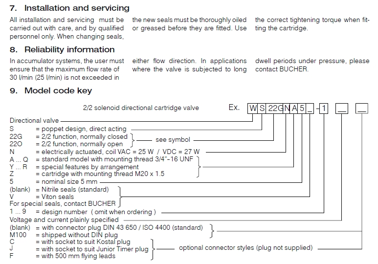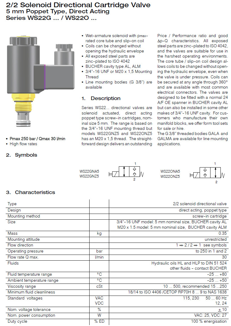 詳細(xì)信息 WS22GNA5-1,WS22GNA5V-1,WS22ONA5-1,WS22ONA5V-1,Bucher方向閥