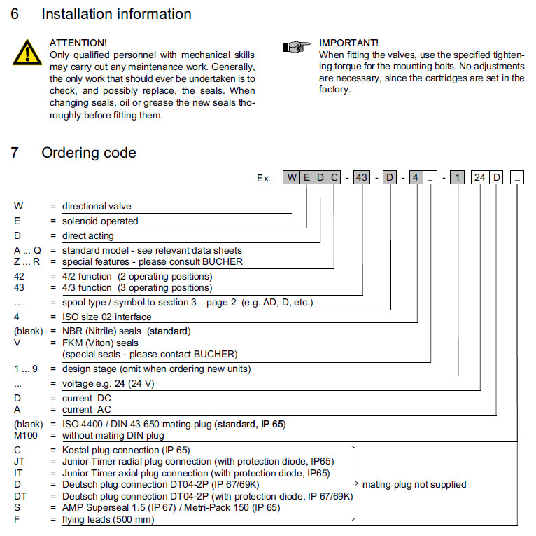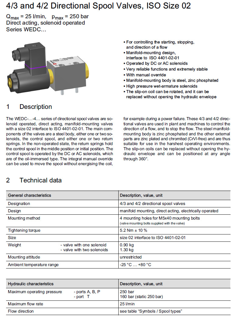 詳細(xì)信息 WEDC-43-D-4-1,WEDC-42-D-4-1,WEDC-43-D-4V-1,WEDC-42-D-4V-1,Bucher方向閥