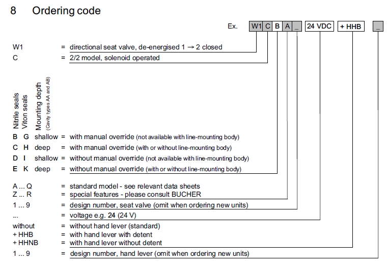 詳細(xì)信息 W1CBA1-24VDC,W1CCA1-24VDC,W1CDA1-24VDC,W1CEA1-24VDC,Bucher方向閥