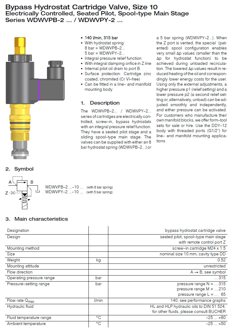 WDWVPB-2NDO-10-1,WDWVPB-2MDO-10-1,WDWVPB-2LDO-10-1,Bucher旁路閥插裝閥