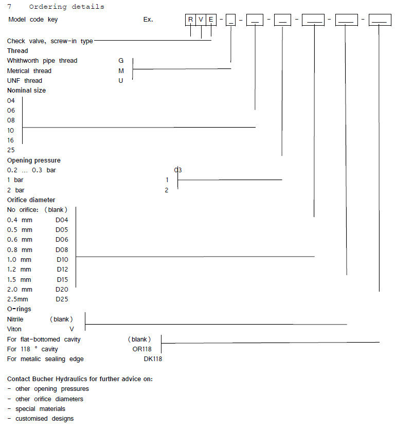 RVE-G-04,RVE-G-06,RVE-G-08,RVE-M-10,RVE-M-16,RVE-U-25,RVE-U-32,Bucher止回閥