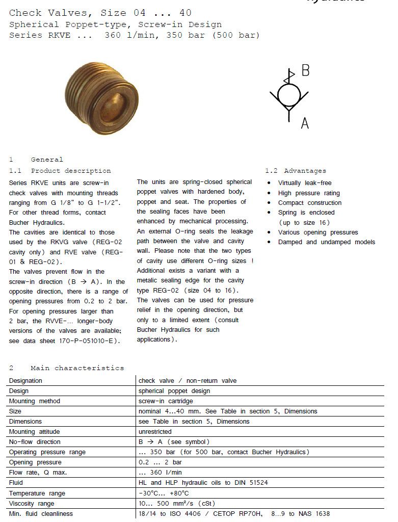 RKVE-G-04,RKVE-G-06,RKVE-G-08,RKVE-M-10,RKVE-M-16,RKVE-U-25,RKVE-U-32,Bucher止回閥