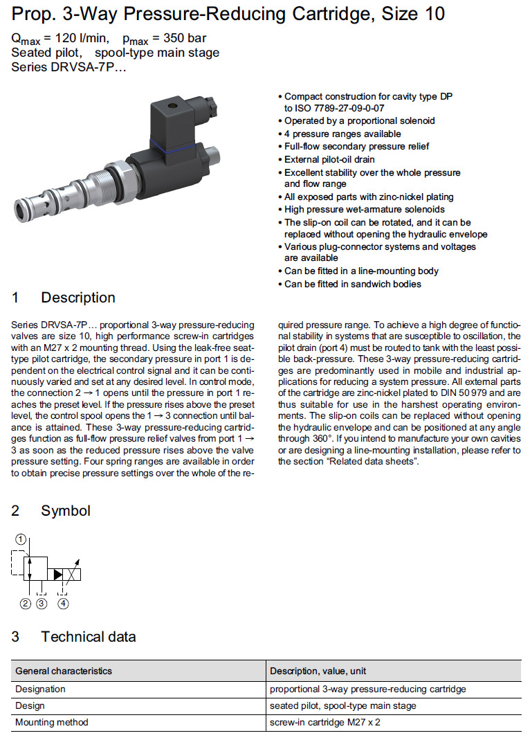 詳細(xì)信息 DRVSA-7P-350,DRVSA-7P-250,DRVSA-7P-160,DRVSA-7P-100,Bucher減壓閥